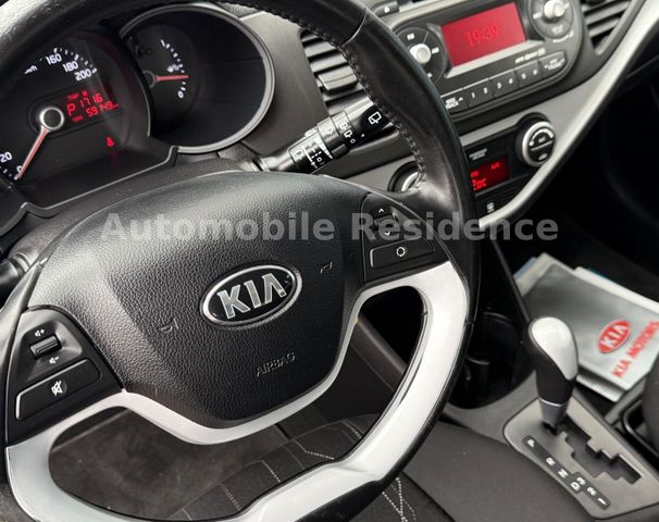 3. Bremsleuchte, Airbag Beifahrerseite abschaltbar, Airbag Fahrer-/Beifahrerseite, Aktive Kopfstützen vorn, Aktives Bremslicht (ESS), Audiosystem KIA CD/MP3-Radio, Außenspiegel elektr. anklappbar, Außenspiegel elektr. verstell- und heizbar, beide, Außenspiegel Wagenfarbe, Blinkleuchte in Außenspiegel integriert, Bordcomputer, Bremsassistent, Drehzahlmesser, Elektron. Traktionskontrolle, Fahrassistenz-System: Berganfahr-Assistent, Fensterheber elektrisch hinten, Fernentriegelung Tankklappe, Gegenlenkunterstützung (Vehicle Stability Management, VSM), Gepäcknetz / Tasche an Vordersitzlehne, Gepäckraumabdeckung / Rollo, Getränkehalter, Gurtstraffer (vorn), Heckscheibe heizbar, Heckscheibenwischer, Isofix-Aufnahmen für Kindersitz, Karosserie: 5-türig, Knieairbag Fahrerseite, Kopf-Airbag-System, Kopfstützen hinten verstellbar, Kopfstützen vorn verstellbar, Kühlergrill verchromt, Laderaumabdeckung, Lenksäule (Lenkrad) höhenverstellbar, Mittelkonsole Metall-Optik, Motor 1,2 Ltr. - 63 kW KAT, Multifunktion für Lenkrad, Radiovorbereitung, 6 Lautsprecher, Reifen-Reparaturset, Rücksitzlehne geteilt/klappbar, Schadstoffarm nach Abgasnorm Euro 5, Schalt-/Wählhebelgriff Leder, Schublade / Ablagefach unter Sitz vorn rechts, Schwellerabdeckung / -verkleidung, Seitenairbag, Sicherheitsgurte vorn höhenverstellbar, Sitz vorn links höhenverstellbar, Sitzbezug / Polsterung: Stoff, Sonnenblenden mit Make-up-Spiegel, Stau-/Ablagefach im Laderaumboden, Steckdose (12V-Anschluß) in Mittelkonsole, Stoßfänger Wagenfarbe, Türgriffe außen verchromt, Türgriffe innen Chrom-Optik, USB-Anschluss + AUX-IN-Anschluss, Wärmeschutzverglasung