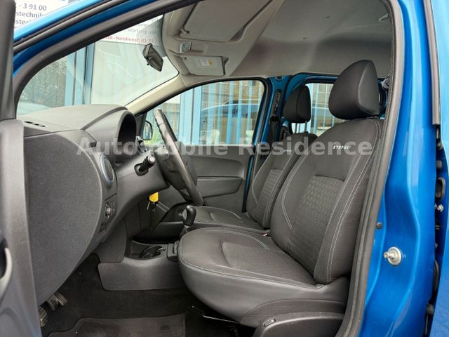 Ablagefach im Dachhimmel, Airbag Beifahrerseite, Airbag Beifahrerseite abschaltbar, Airbag Fahrerseite, Antischlupfregelung (ASR), Außenspiegel elektr. verstell- und heizbar, Außenspiegel Titanoptik, Bordcomputer, Bremsassistent, Dachreling, Eco Mode (Fahrmodusschalter), Einparkhilfe hinten, Elektr. Bremskraftverteilung, Handschuhfach abschließbar, Heckflügeltüren mit Verglasung, Heckscheibe heizbar, Heckscheibenwischer, Heizung mit Umluftschaltung, Isofix-Aufnahmen für Kindersitz an Rücksitz, Karosserie: 5-türig, Kunststoffboden im Koffer-/Laderaum, Lenksäule (Lenkrad) höhenverstellbar, LM-Felgen, Luftdüsen im Fond, Motor 1,2 Ltr. - 85 kW 16V TCE KAT, Raucher-Paket, Reifen-Reparaturset, Reifendruck-Kontrollsystem, Rücksitzbank (2.Reihe) geteilt, klappbar (1/3-2/3), Schadstoffarm nach Abgasnorm Euro 6, Schaltpunktanzeige, Schiebetür links mit Ausstellfenster, Schiebetür rechts mit Ausstellfenster, Schutzzierleisten seitlich, Seitenairbag vorn, Sicherheitsgurte vorn höhenverstellbar, Sitz vorn links höhenverstellbar, Sitzbezug / Polsterung: Stoff, Start/Stop-Anlage, Steckdose (12V-Anschluß) 2.Sitzreihe, Stoßfänger Wagenfarbe, SUV-Paket, Türverriegelung automatisch, Unterfahrschutz Chrom, satiniert, Verglasung getönt