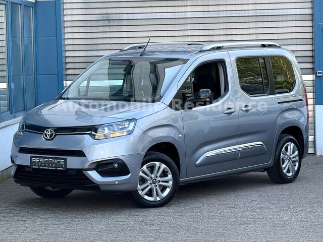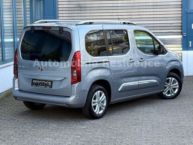 , Anhänger-Stabilisierungs-Programm (TSC), Audiobedienung am Lenkrad, Audiosystem: Multimedia Toyota Pro Touch, Außenspiegel elektr. anklappbar, Außenspiegel elektr. verstell- und heizbar, Außenspiegel schwarz lackiert, Beifahrereinzelsitz, Beifahrersitz klappbar (Flat-Floor), Bremsassistent, DAB-Tuner (Radioempfang digital), Dachreling, Einparkhilfe vorn und hinten, Elektr. Bremskraftverteilung, Fahrassistenz-System: Berganfahrkontrolle (HAC), Fahrassistenz-System: Fernlichtassistent (Abblendautomatik Fahrlicht, AHB), Fensterheber hinten elektr. mit Einklemmschutz, Fensterheber vorn elektr. mit Einklemmschutz, Freisprechanlage mit Audiostummschaltung, Gepäckraum-Abtrennung (Netz), Gepäckraumabdeckung / Rollo, Heckklappe mit separat zu öffnendem Fenster, Heckklappe mit Verglasung, Innenspiegel mit Abblendautomatik, Isofix-Kindersitz-System, Karosserie/Aufbau: Kombi, Kindersicherung elektr. betätigt, Klapptische in Fahrer- und Beifahrersitzlehne integriert, Klimaautomatik 2-Zonen, Komfortsitze, Kopf-Airbag-System, Motor 1,2 Ltr. - 96 kW 12V Turbo KAT, Multi-Funktions-Display (TFT), Otto-Partikelfilter (OPF), Parkbremse elektrisch (EPB), Radstand 2785 mm, Reifen-Reparaturkit, Reifendruck-Kontrollsystem, Rückfahrkamera, Schadstoffarm nach Abgasnorm Euro 6d, Schadstoffarm nach Abgasnorm Euro 6d-TEMP, Schiebetür links mit Verglasung, Schiebetür rechts mit Verglasung, Seitenairbag hinten, Seitenairbag vorn, Seitenschutzleisten Wagenfarbe, Sitz vorn links höhenverstellbar, Sitzausstattung: 5-Sitzer, Sonnenschutzrollo an Seitenscheiben hinten, Steckdose 230V, Stop&Go-System (TSGS), Stoßfänger Wagenfarbe, Toyota Safety Sense, Türgriffe außen Wagenfarbe, Universal-Schnittstelle (USB-/ iPod-/ AUX-Anschluss), Verglasung 2./3.Reihe, Verglasung getönt, Verglasung hinten abgedunkelt,